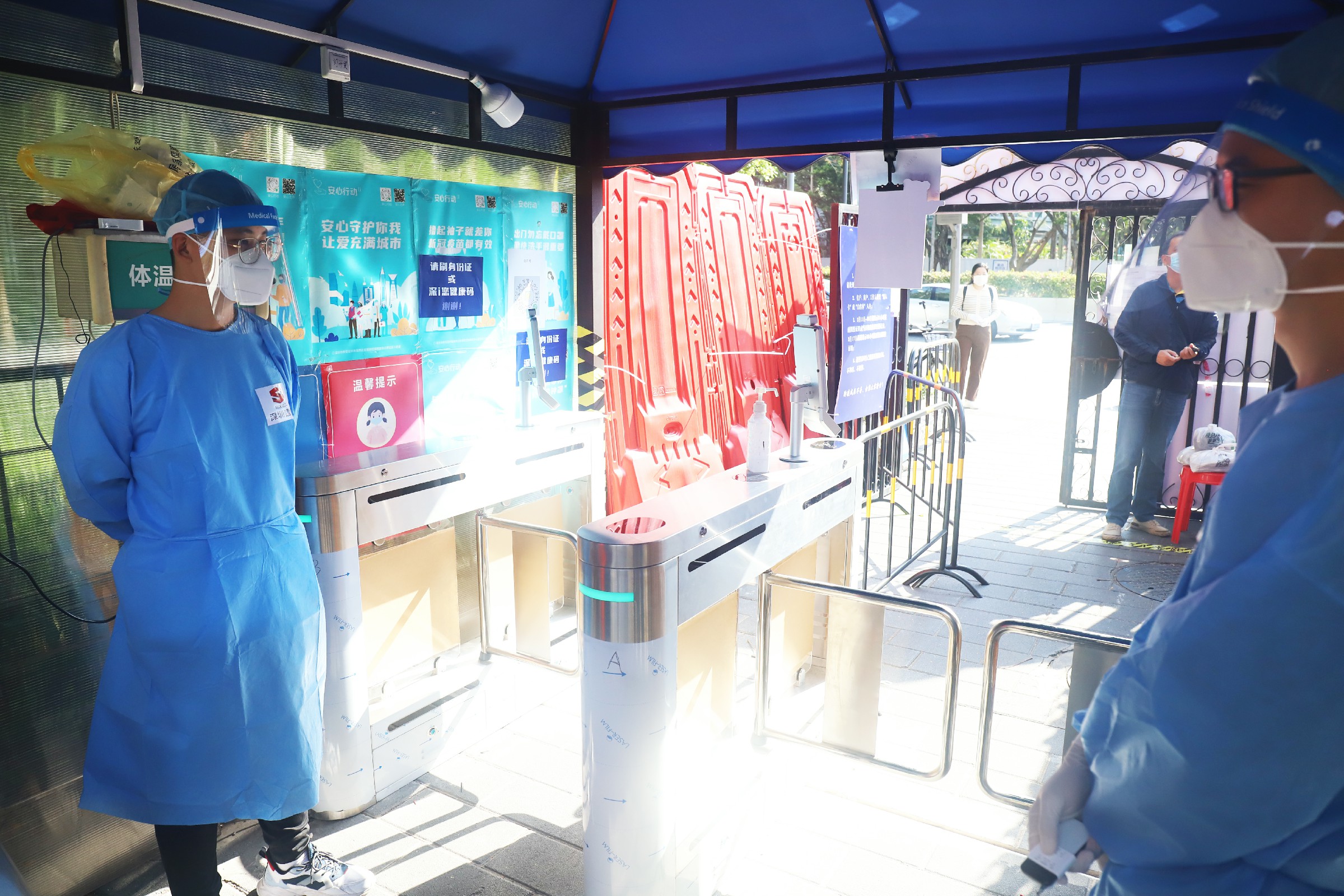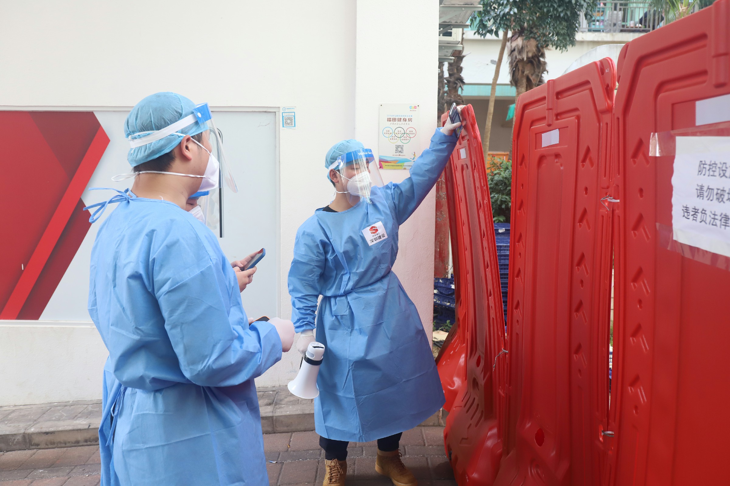 2022年3月12日,再次响应福田区住建局防疫要求,紧急抽调人员支援益田村封闭管理工作。因在深项目施工现场全部封闭,全员等待核酸检测,仅紧急派出6名员工组成的突击队,先行配合益田社区进行封闭管理、查验进出人员健康码、维护封闭设施等工作。后于12日夜间24点前再次组织完成30人志愿队,于13日上午8点在益田社区服务中心集结,参与配合为期3天的围合管控、巡视规劝、协助核酸检测、秩序维护等工作。