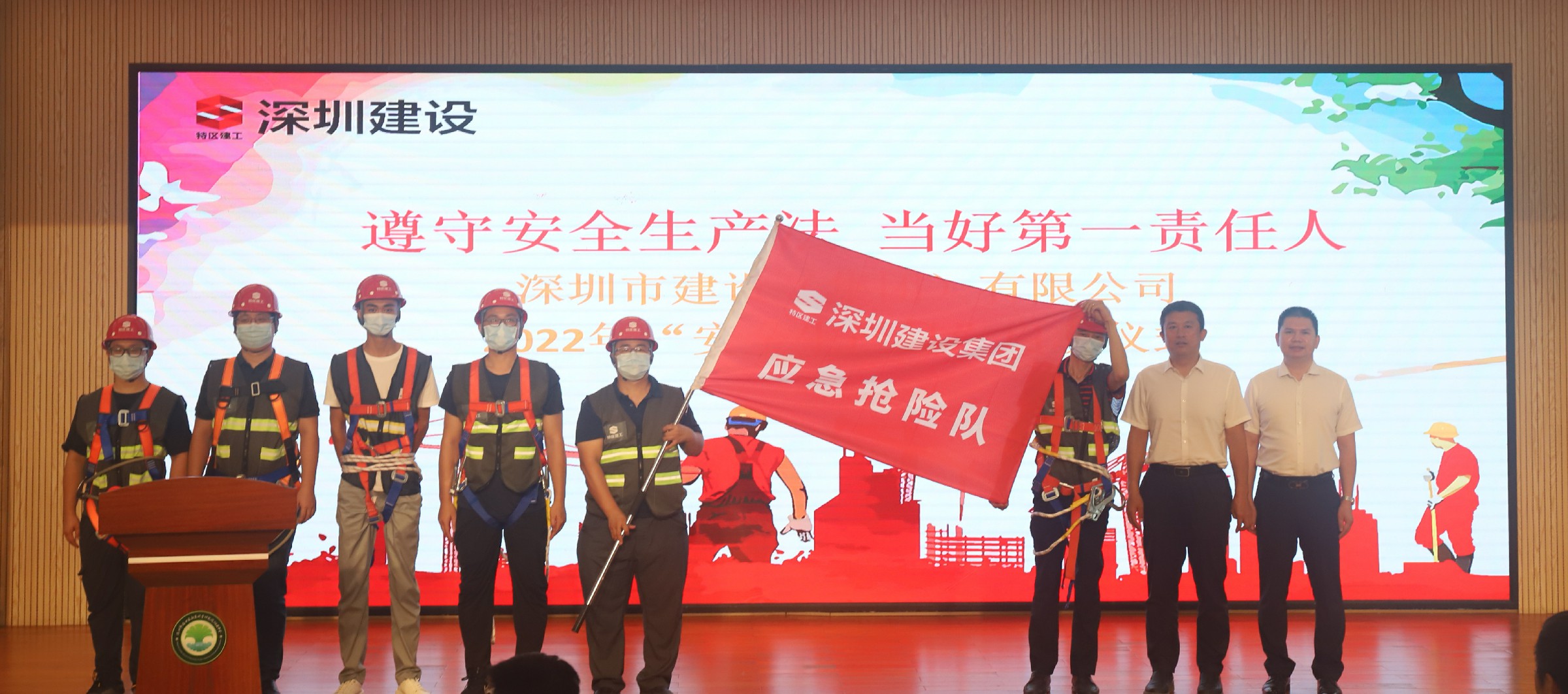 根据《特区建工集团应急救援体系乐竞球赛-乐竞(中国)工作方案》要求,集团需成立以房建工程抢险(设备专业组)为主,其他因自然灾害造成的抢险工程为辅的应急救援队伍。形成规模适度、素质优良、管理规范的应急队伍体系,充分开展培训教育,落实技术装备,跟进政策措施,不断加强应急能力乐竞球赛-乐竞(中国),提高集团整体应对突发事件的能力和水平。在启动仪式上,应急抢险队和安全生产宣传队由黄海董事长授旗宣布成立。
