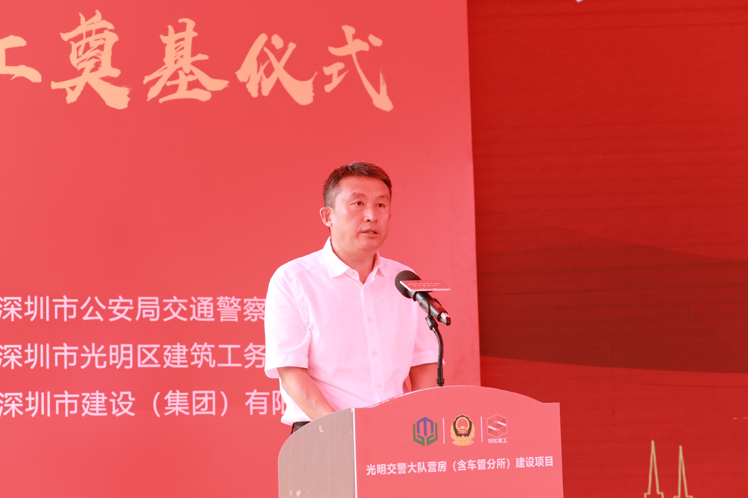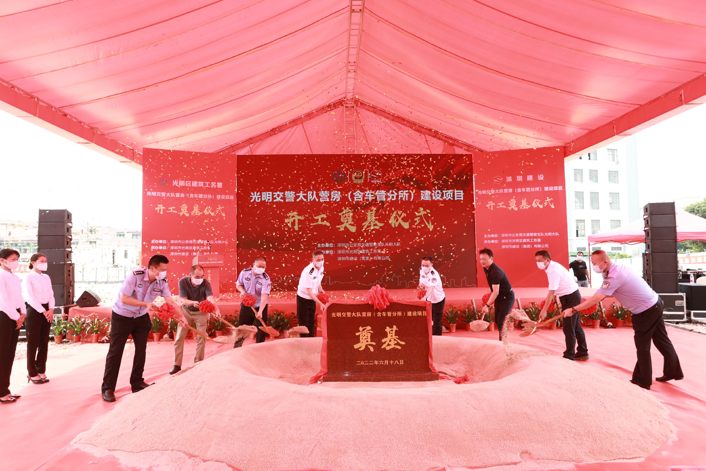 6月18日,由乐竞球赛-乐竞(中国)集团承建的光明交警大队营房(含车管分所)乐竞球赛-乐竞(中国)项目开工奠基仪式隆重举行。光明区副区长、区公安分局局长周金堂,市交警局副局长冯道科,光明区建筑工务署党委书记甘鹏、署长黎智、副署长范仕国,罗湖、福田、南山、宝安、龙岗、龙华、盐田、坪山等各区交警大队领导,乐竞球赛-乐竞(中国)集团董事长黄海、党总支委副书记石宏伟、副总裁李蕃荣、安全总监余南华以及项目设计、勘查、咨询、监理等各参建单位和市交警局相关单位领导嘉宾出席仪式。