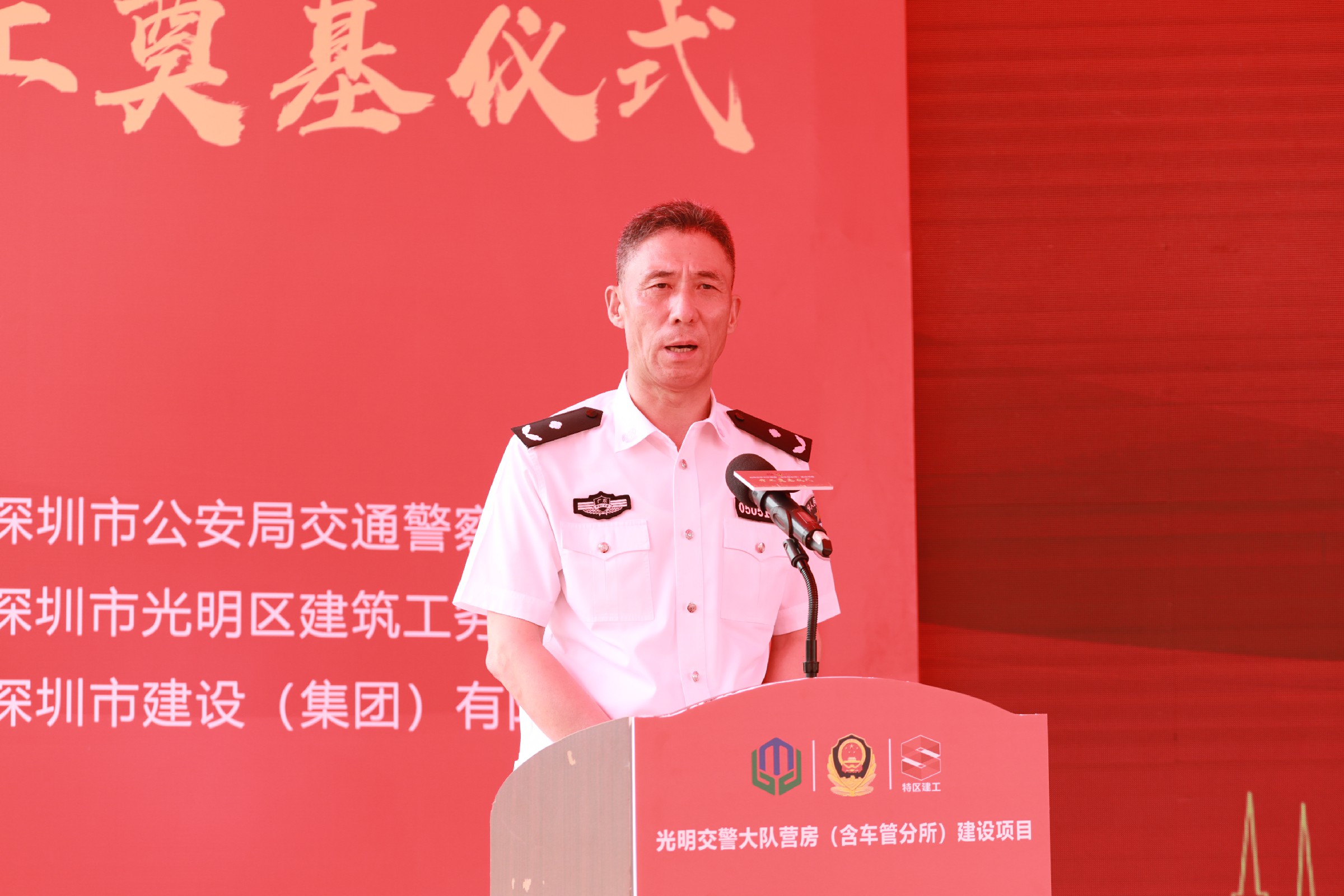 仪式主持人市交警局综合处檀杰长处长安排光明区交警大队大队长蔡昌胜介绍项目涉及各项工作推进情况;光明区副区长、区公安分局局长周金堂,光明区建筑工务署署长黎智,乐竞球赛-乐竞(中国)集团董事长黄海等领导分别致辞。各级领导对项目开工前期推进工作表示了肯定与赞扬,对项目及时高效竣工表达了殷切期望并提出了具体工作要求。